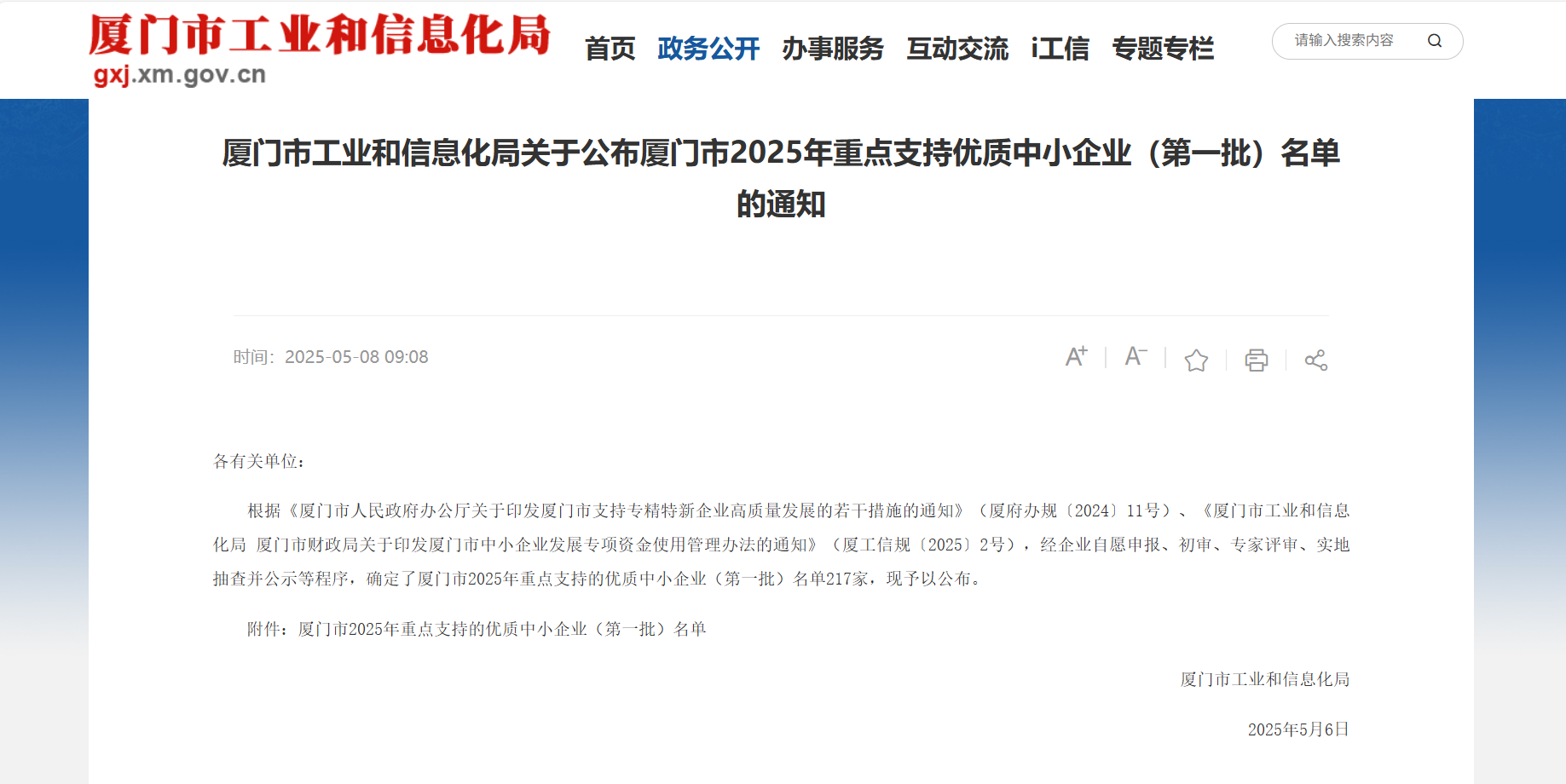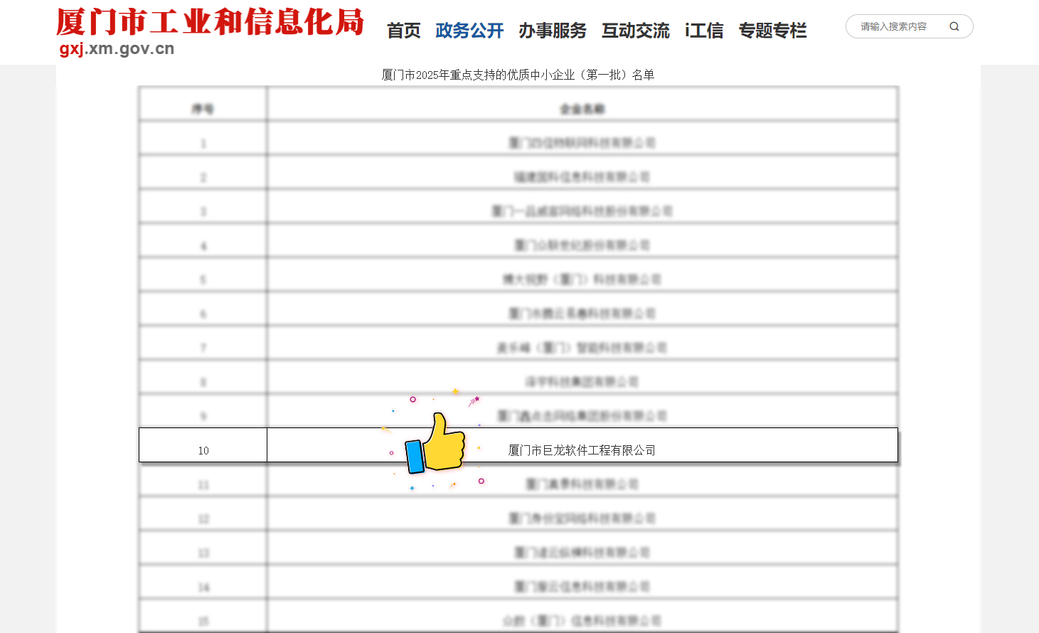 根據《廈門(mén)市人民政府辦公廳關(guān)于印發(fā)廈門(mén)市支持專(zhuān)精特新企業(yè)高質(zhì)量發(fā)展的若干措施的通知》(廈府辦規〔2024〕11 號)、《廈門(mén)市工業(yè)和信息化局 廈門(mén)市財政局關(guān)于印發(fā)廈門(mén)市中小企業(yè)發(fā)展專(zhuān)項資金使用管理辦法的通知》(廈工信規〔2025〕2 號),經(jīng)過(guò)企業(yè)自愿申報、初審、專(zhuān)家評審、實(shí)地抽查并公示等一系列嚴格規范的程序,廈門(mén)市 2025 年重點(diǎn)支持的優(yōu)質(zhì)中小企業(yè)(第一批)名單正式公布,廈門(mén)市巨龍軟件工程有限公司榮耀入選,成為 217 家獲此殊榮的企業(yè)之一!